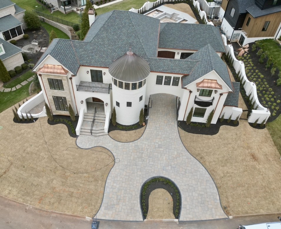 Horseshoe Driveway, Courtyard Lighting, Linear Drainage, Front Sidewalk